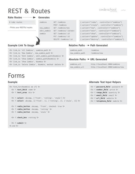 Rails For Zombies 2 Cheatsheets